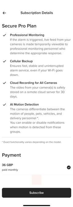a. This plan is only available if you live in the UK and your Subscription Plan includes the Professional Monitoring Feature. Upon an alarm event taking place, personnel within our monitoring centre (“Monitoring Personnel”) will check the alarm status and all video monitoring Smart Products within the Premises. You agree that the Monitoring Personnel may make use of the Content (real-time or recorded) provided through the Smart Products to verify the nature of any alarm event.