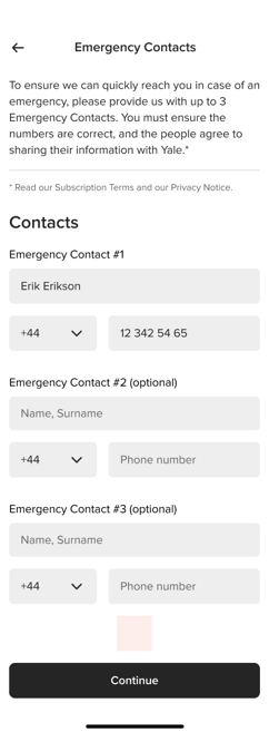 Step 3: Give us the details of your 3 emergency contacts (in priority order).